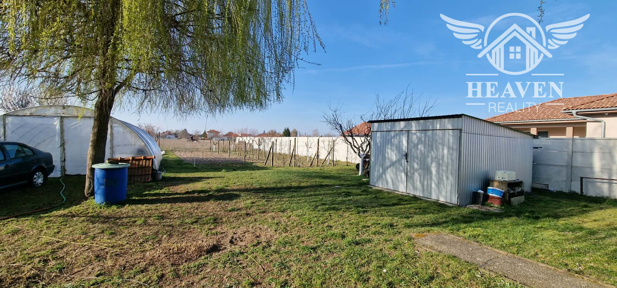 Na pozemku sa nachádzajú : plechová garáž, fóliovník, udržiavaný vinič, ovocné stromy.