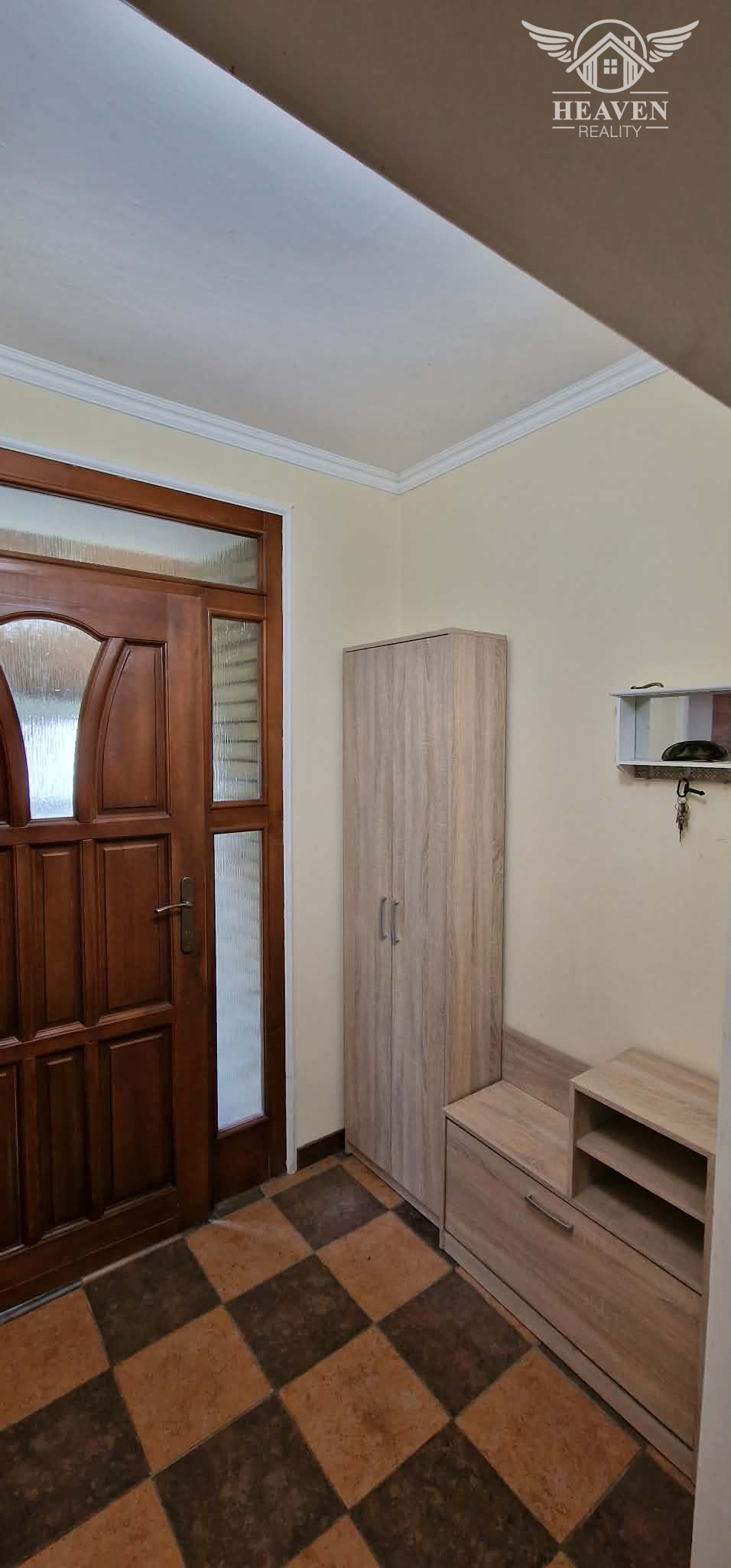 Dispozícia : chodba, kuchyňa, 2 izby, kúpeľňa so sprchovacím kútom a toaletou, špajza, krytá terasa.